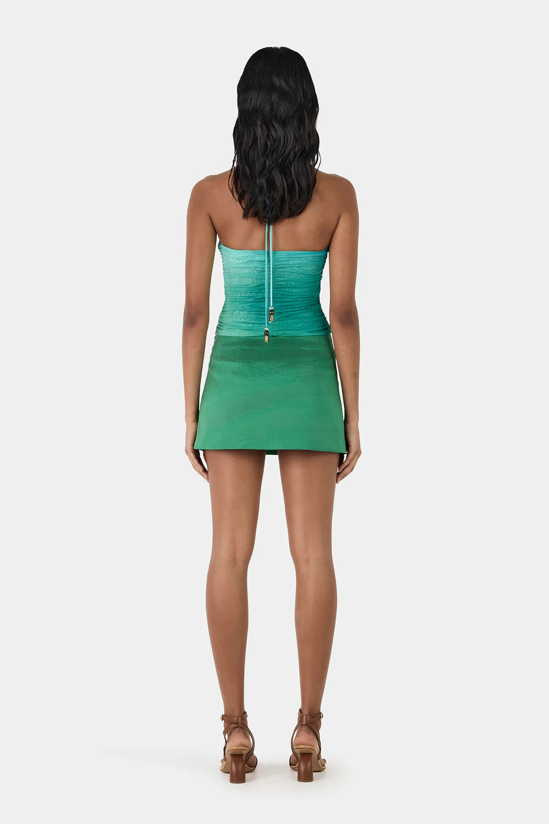 The Amara Top is a fitted, cropped style top cut from a double-layered mesh for a soft, sculpted feel. The top features full ruching throughout, a sweetheart neckline and halter neck ties with delicate bead detailing.
