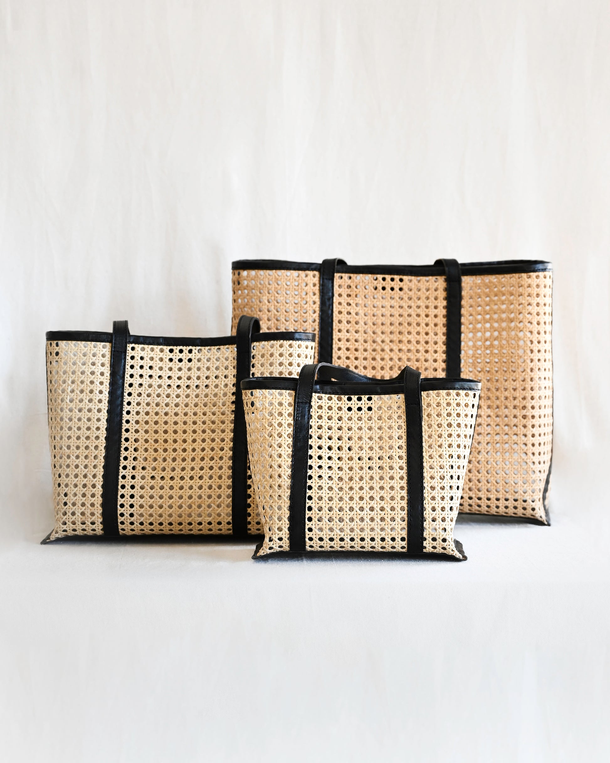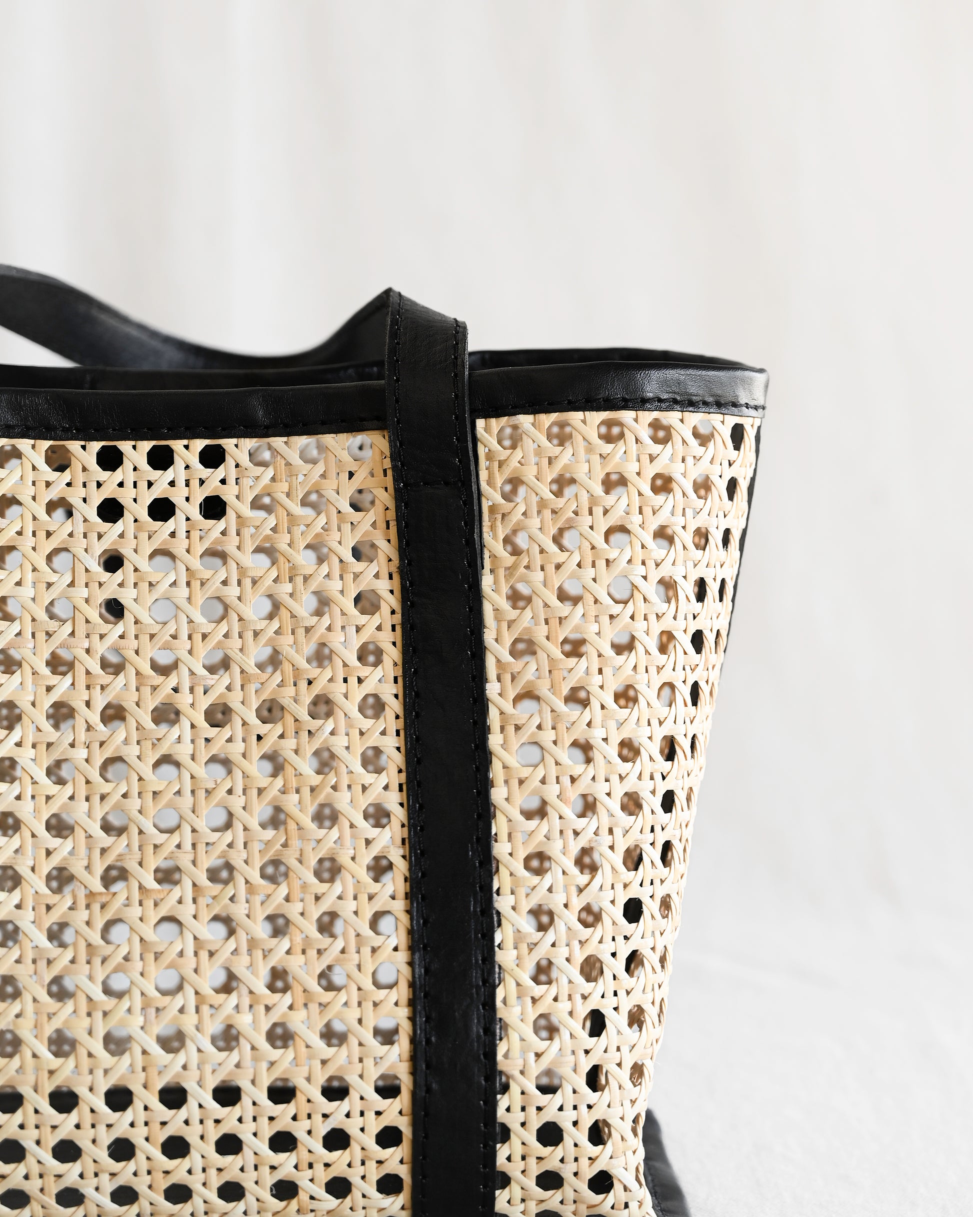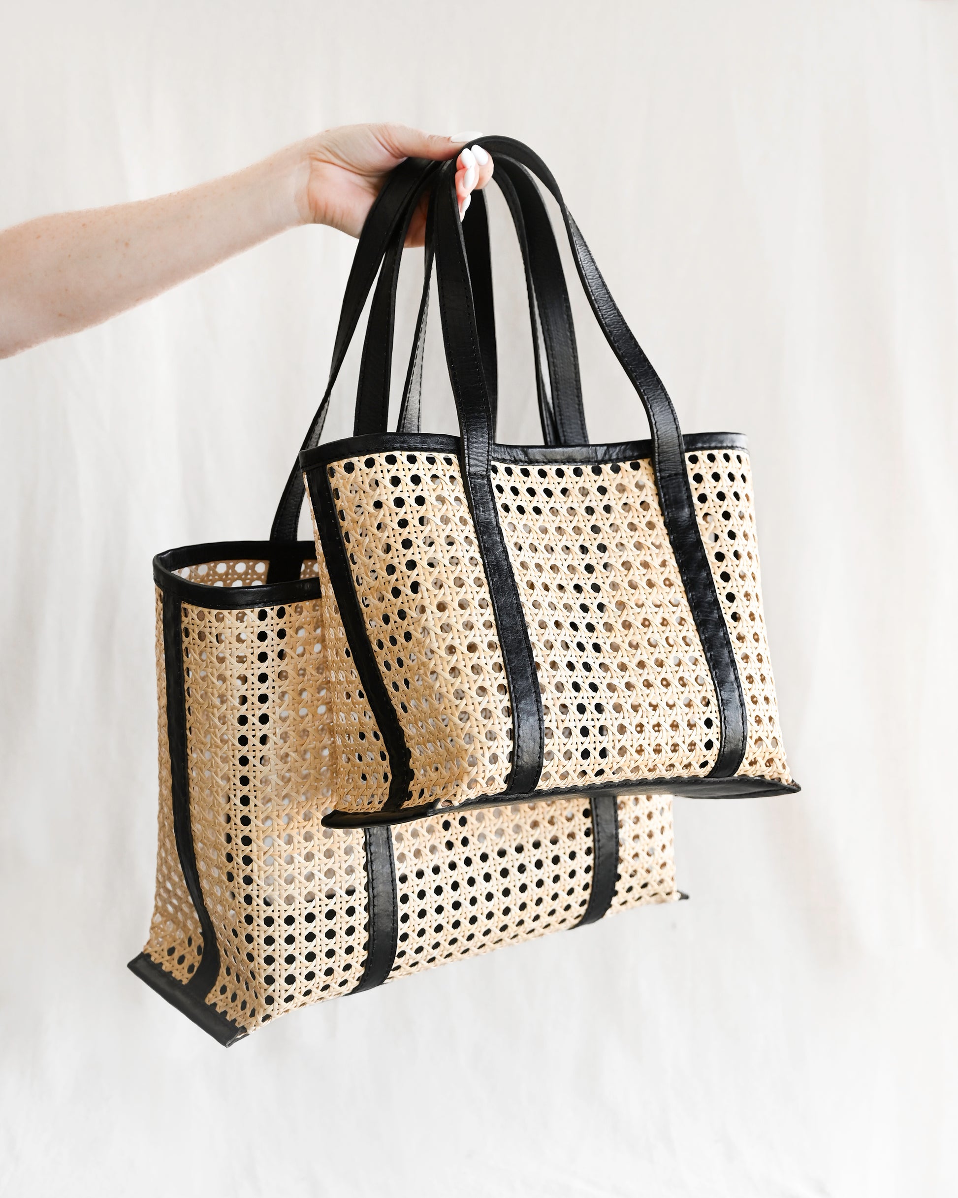 Meet our signature Byron Tote, now in a petite size. Handwoven by our artisans in Bali, this rattan tote is perfect for daily errands or warm afternoons at the beach. Featuring a strong leather base, fixed straps, and a snap closure, this tote perfectly houses all your daily essentials.