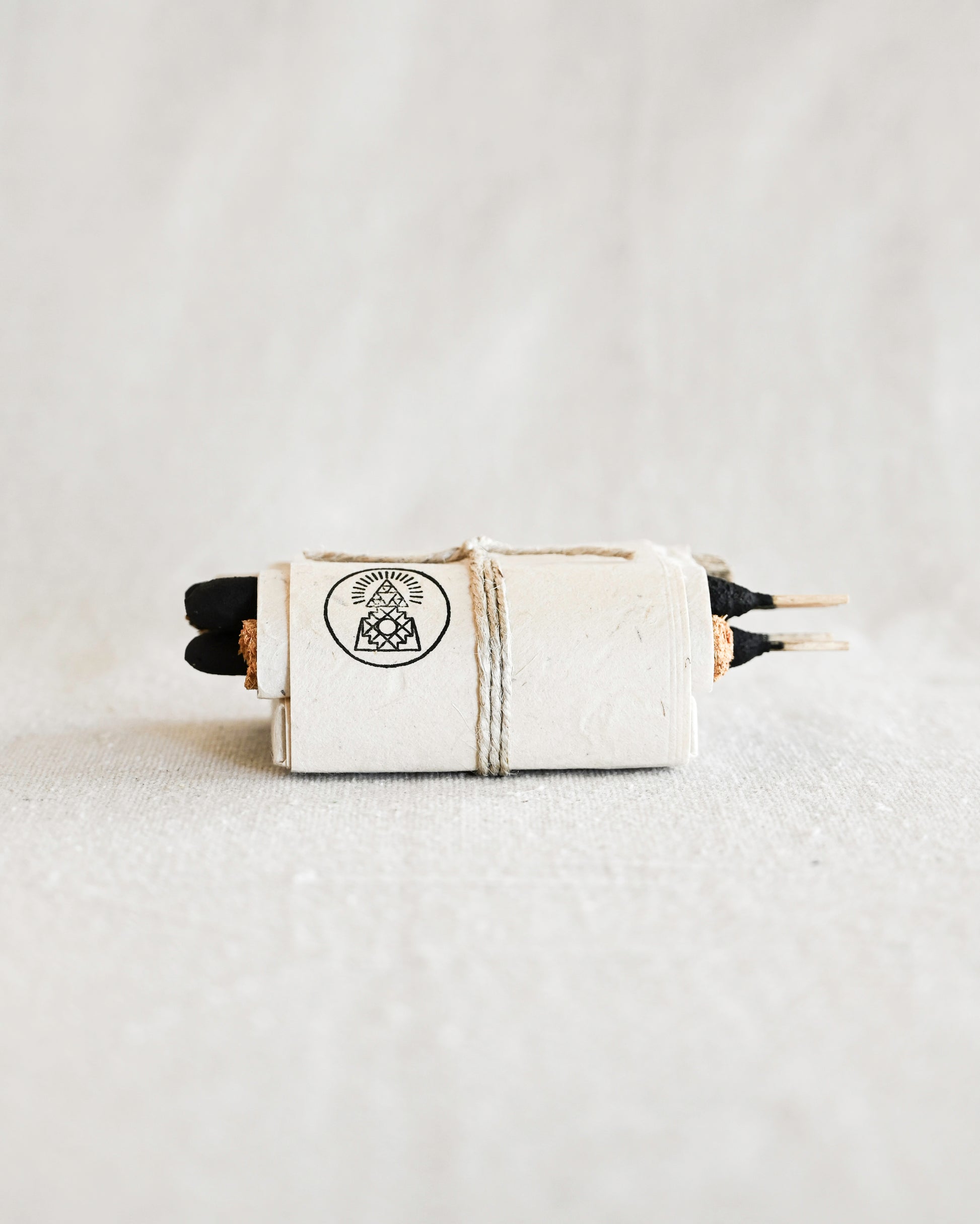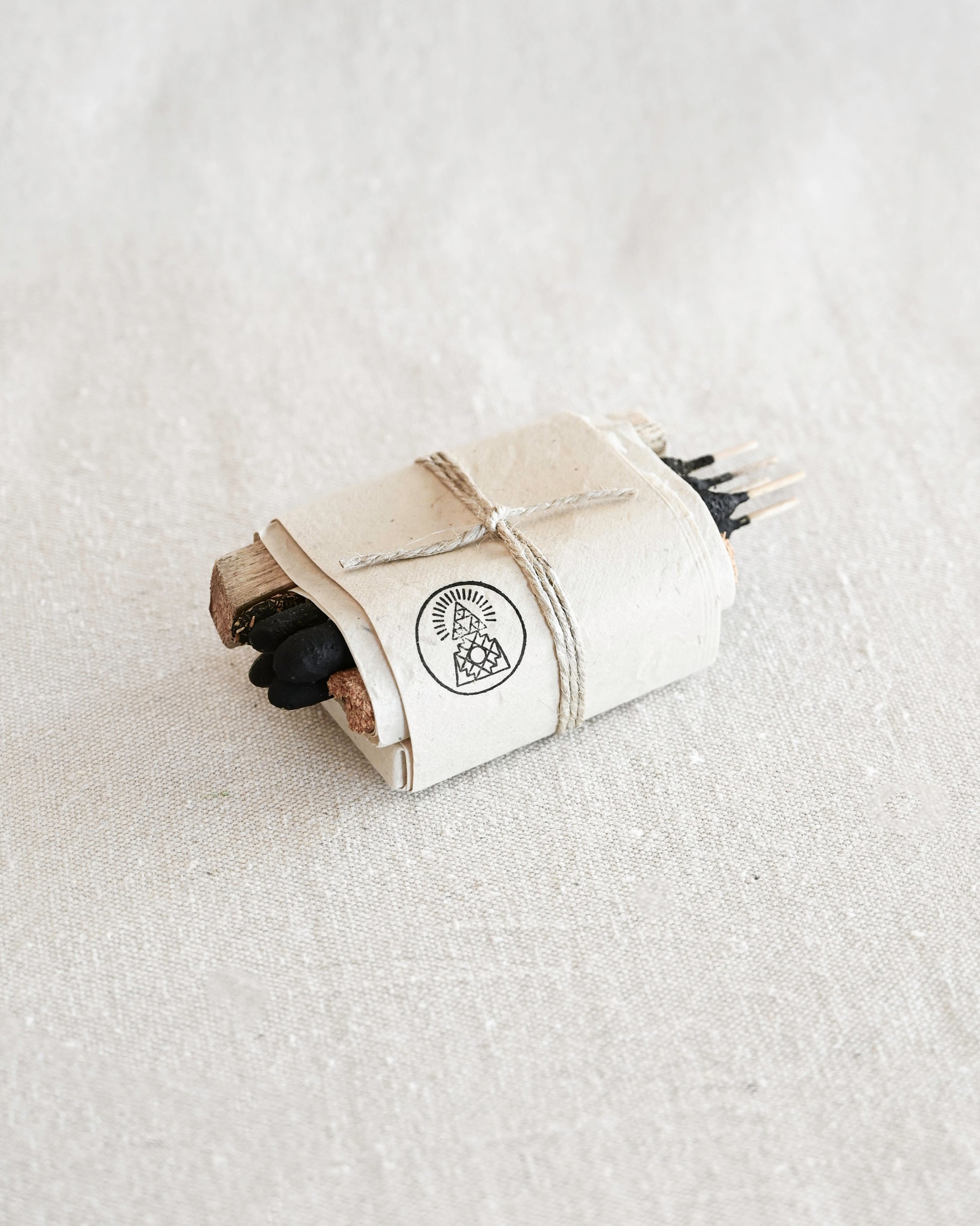 A beautiful gift offering – the Incausa Incense Bath and Meditate bundle. The set includes a small batch vegan soap, scented in essential oils of Lavender, Coriander, Patchouli, Cardamon, Marjoram, Clove, Cinnamon, Vetiver & Geranium and more. It is hand wrapped with Traditional Nepalese Lokta paper. The soap is bundled with Breu resin, Palo Santo, White Sage, Chacrona & Jagube artisanal incense sticks.