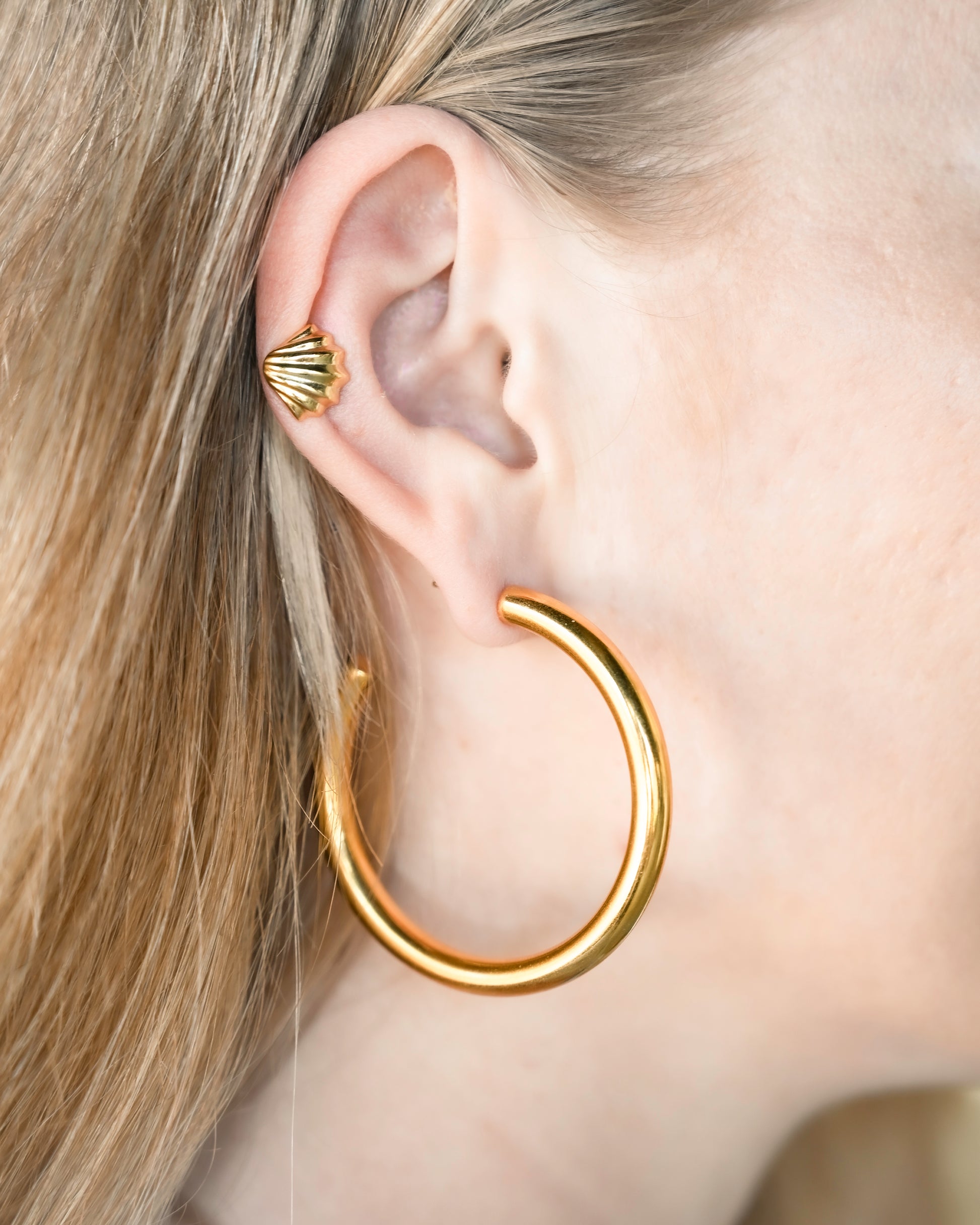 The Laguna Hoops are a wardrobe must-have. Dress them up or down, these hoops never go out of style. Crafted from a lightweight stainless steel and finished in a high-shine gold colorway. They are available in three signature sizes.