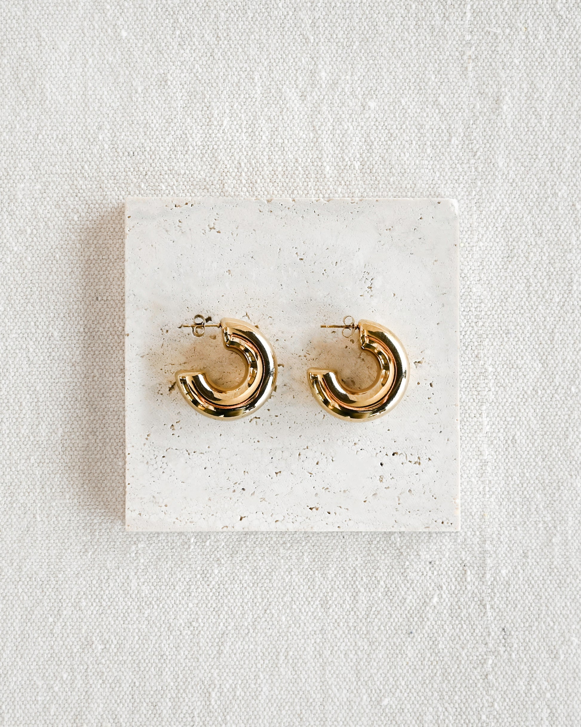 The Lily Bubble Hoop Earrings are a bold statement earring. Perfect for a night out or to add a pop of shine, these large hoops are sure to turn heads.
