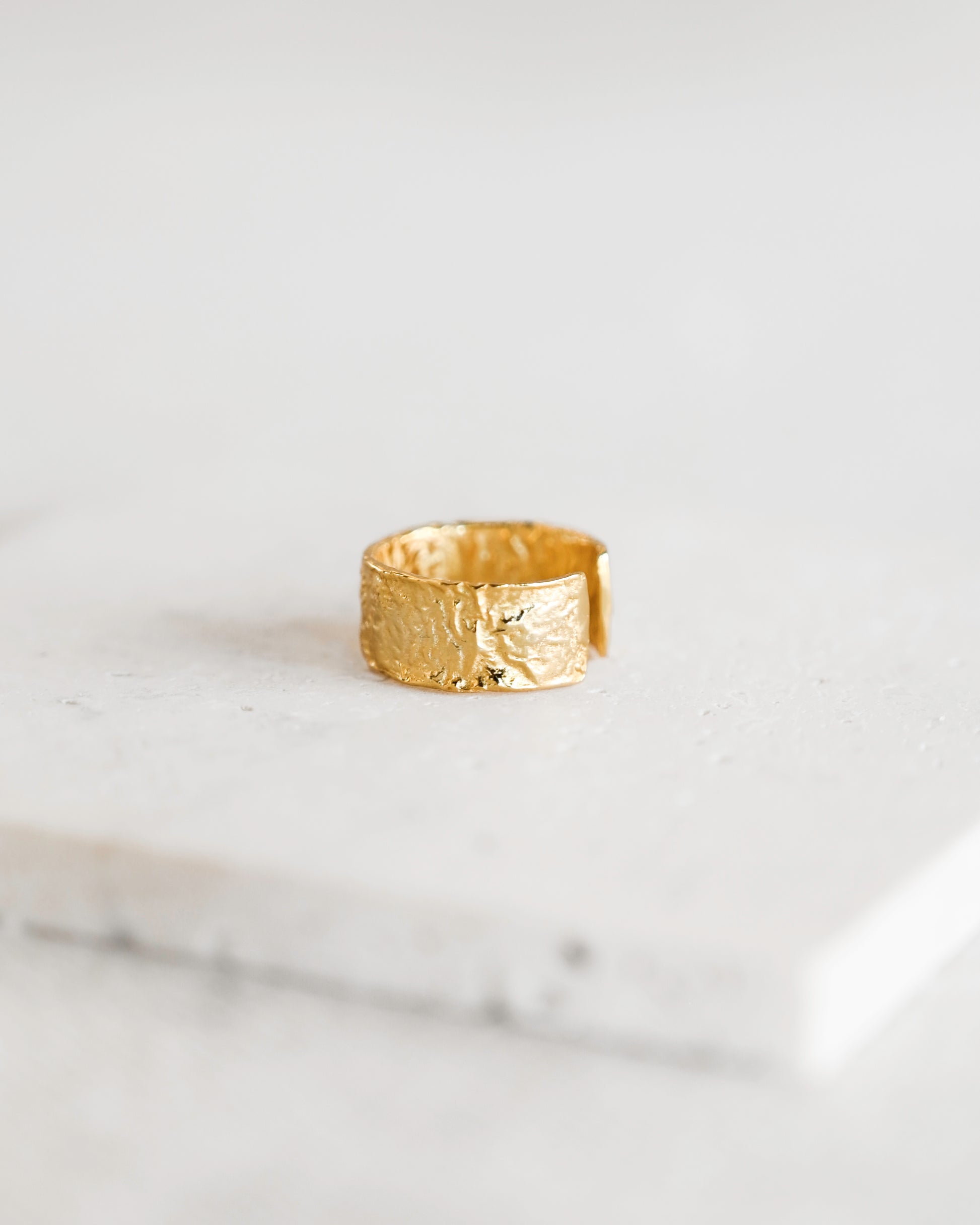 The Margot is an effortless ring available in three signature widths. Crafted from 18k gold plated sterling silver, it is a simple textured piece that will compliment any look.