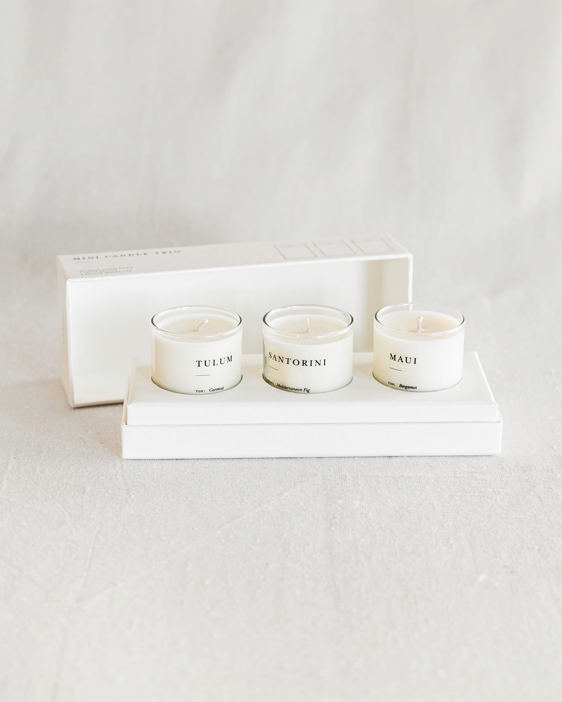The Mini Candle Gift set is the perfect trio of mini candles to try, gift, or savor individually. Hand-poured in screen-printed glass votives, the sets are then packaged in a perfectly giftable & luxurious textured box.