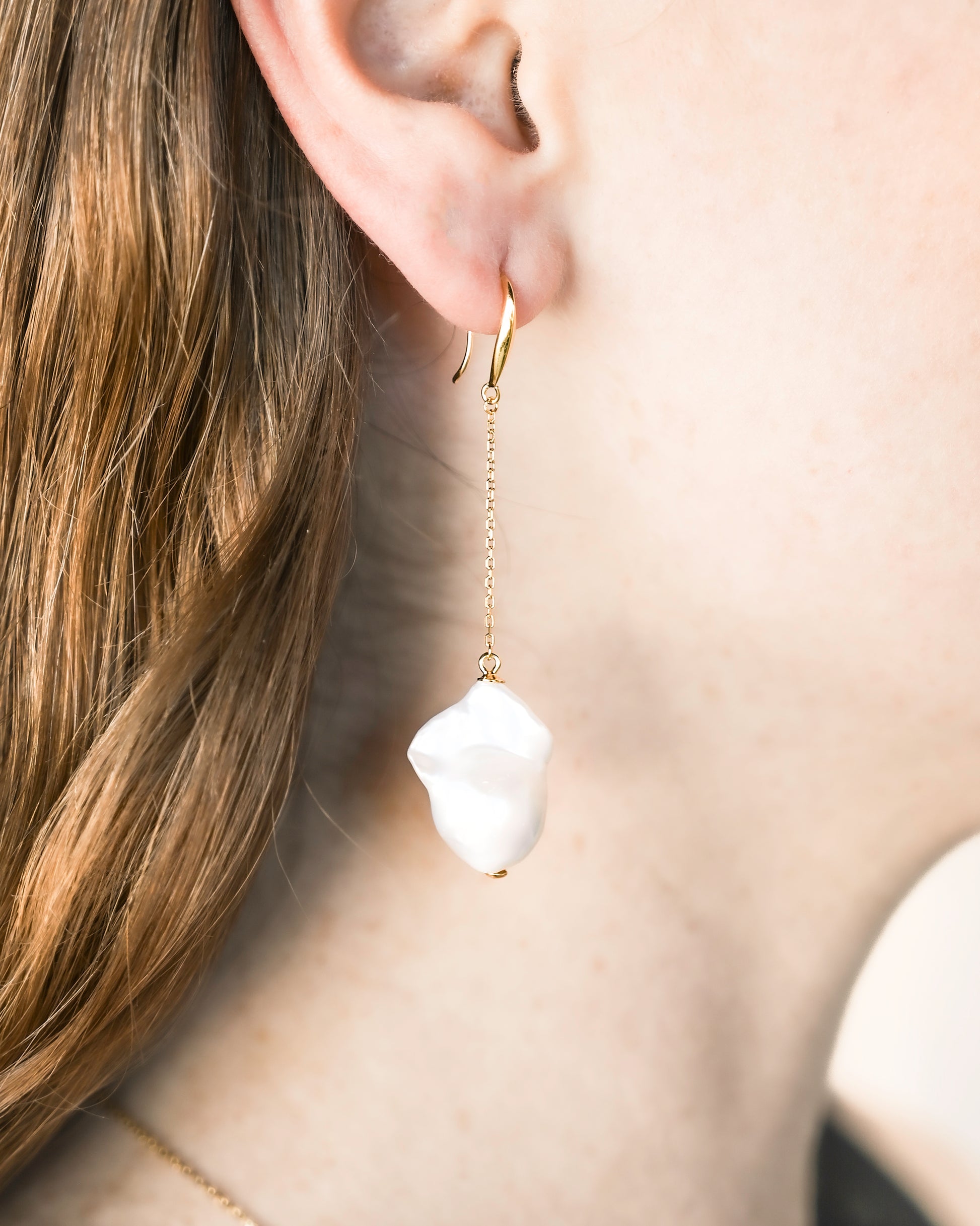 Make a statement with our Inez Baroque Pearl Drop Earrings. Crafted from fine AA+ certified pearls, these earrings will elevate any outfit.