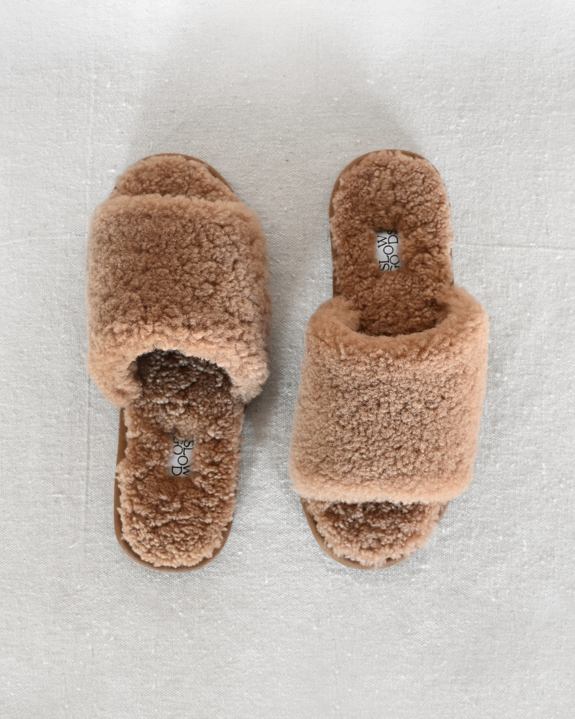 The Shearling Slippers in Camel are plush, warm, and effortlessly cozy. Crafted from premium New Zealand shearling with a durable rubber sole, they’re perfect for lounging at home or running errands on the go.