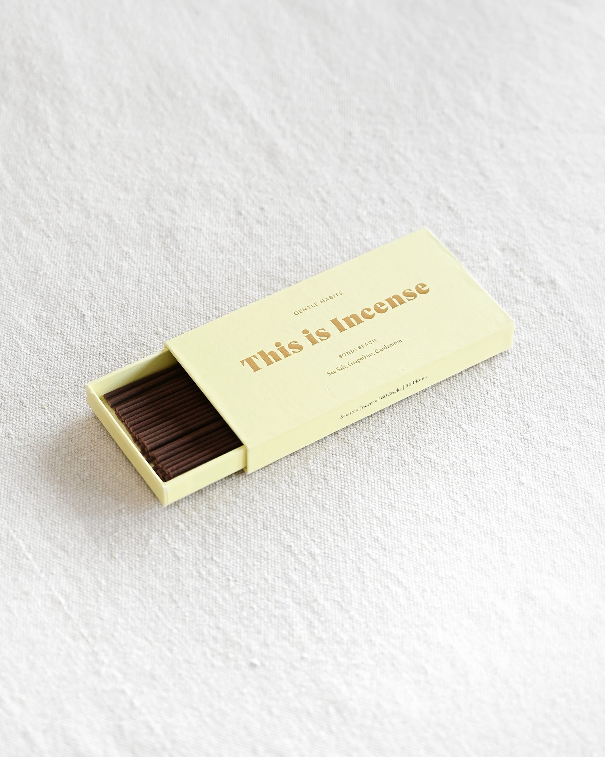 The Bondi Beach incense is delicate with unexpected with top notes of Grapefruit, middle sweet notes of Cardamom then grounded with Cedarwood.